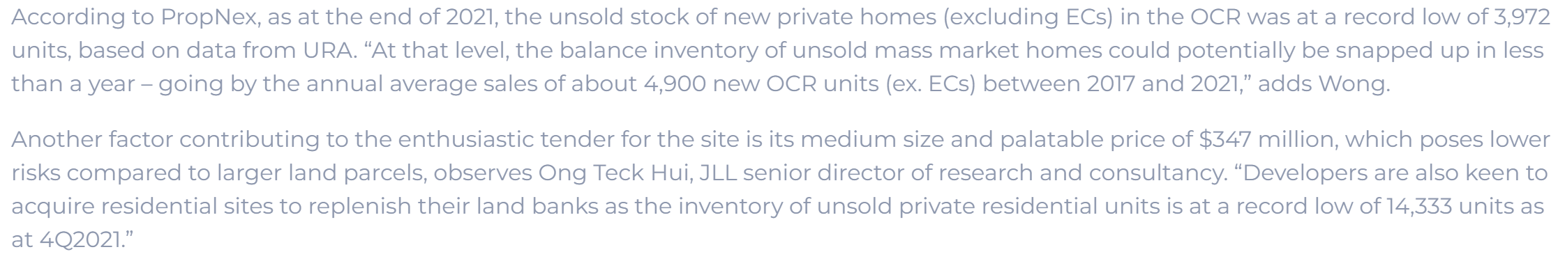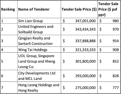 The Group placed a bidder of $347 million for the 168,602 square feet site. The land rate of the purchase translates to $980 per square foot per plot ratio (psf ppr).